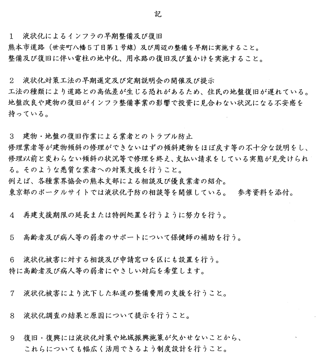 | 2016年6月2日 | 澤田昌作市議会議長と高田晋熊本副市長にそれぞれ要望書を提出 |